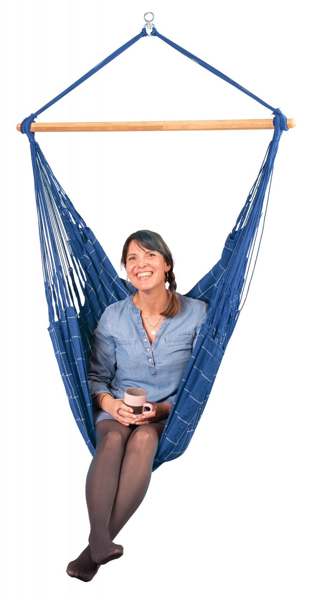 In our Basic hammock chair it is best to enjoy in a seated position. Looking for just enough space to sit or lie down? Our Comfort model offers a generous chair bed. You want even more space to relax? Then you can spread out with family or friends in our kingsize hammock chair and enjoy it seated and lying down.