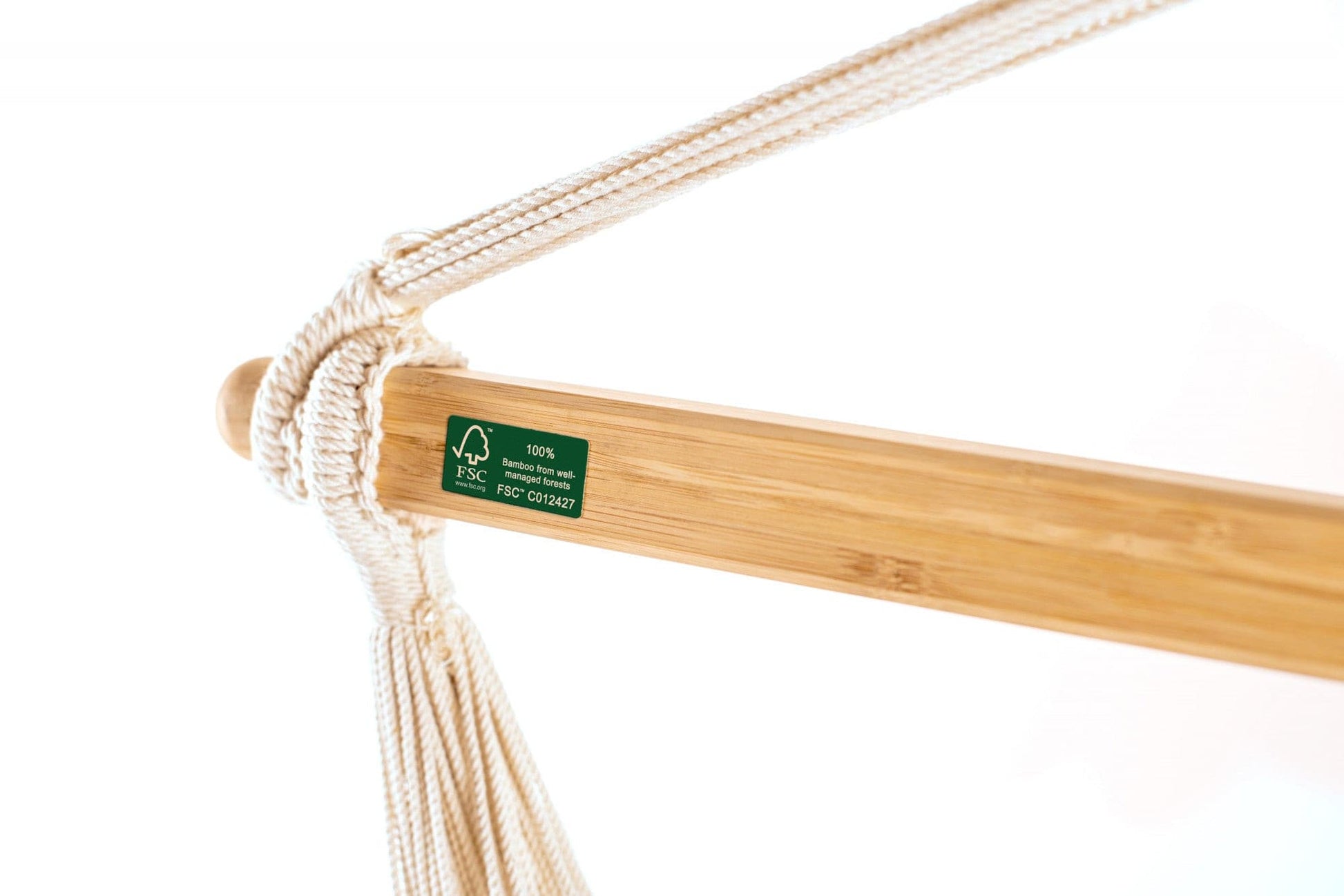 The bamboo spreader bars bear the Forest Stewardship Council (FSC™) seal of approval. This international certification guarantees our bamboo is sourced from ecologically and socially responsibly managed forests.