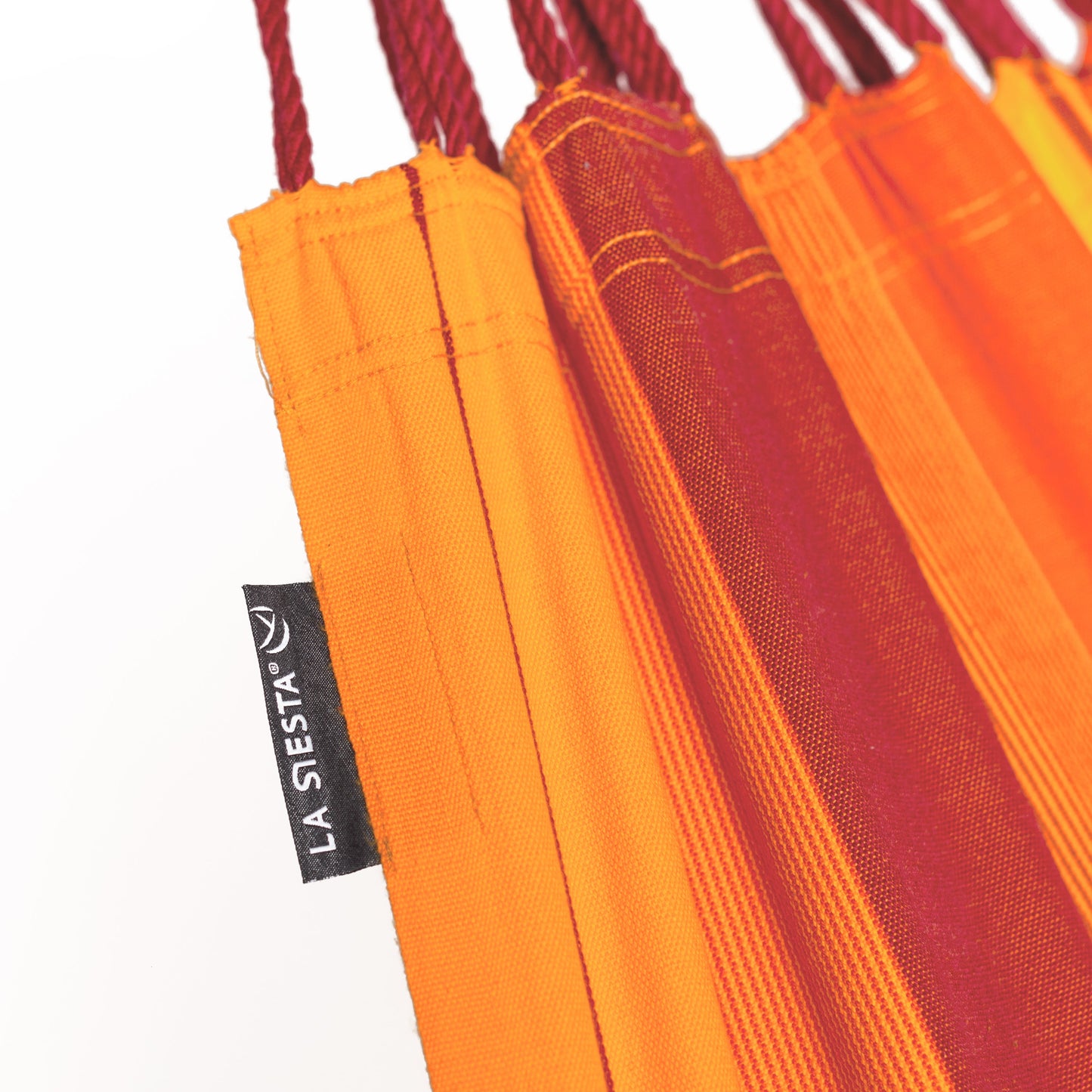 In Colombia, our hammocks are made from high-quality materials that reflect the joy of South American life and help you forget your worries:Our hammock experts carefully weave fabric with refined patterns and lovingly knot the many suspension cords by hand into the typical Colombian loop, the cabezal.