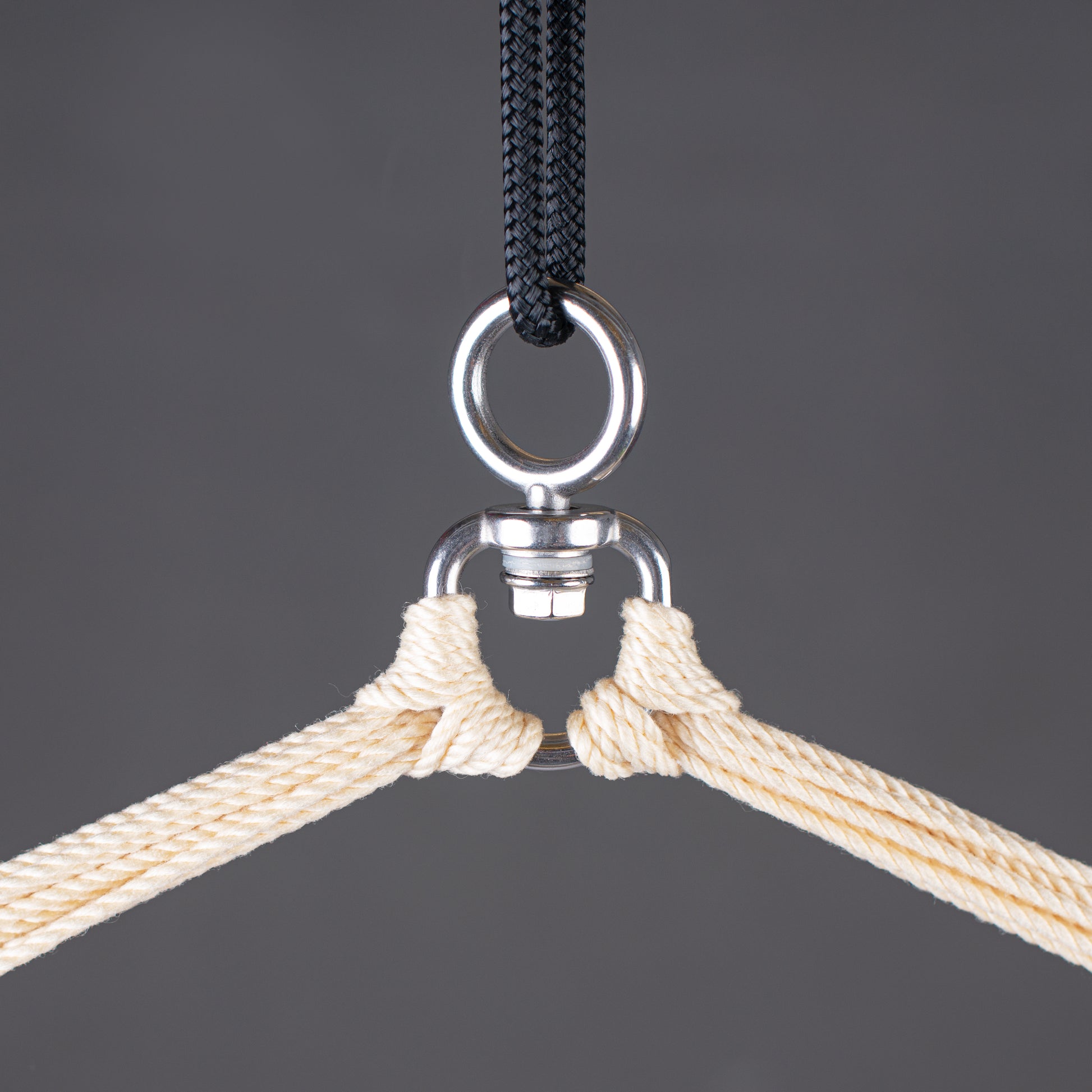 Tuotteeseen integroidun teräksisen turvaleikarin ansiosta tuoli pääsee pyörimään vapaasti 360° narujen kiertymättä toisiinsa.