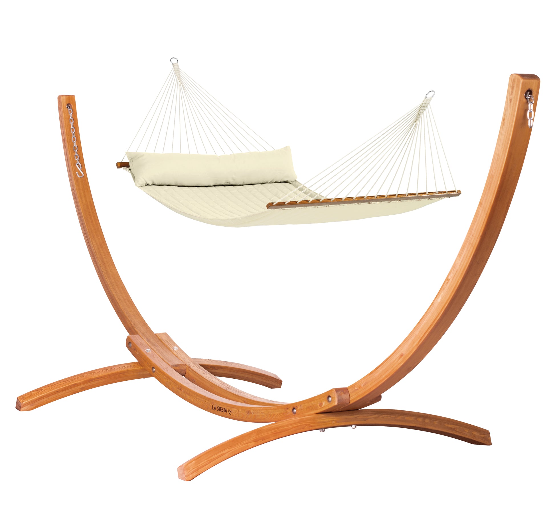 Maera Outdoor Vanilla - Pehmustettu riippumatto päätypuilla outdoor ja teline FSC®-sertifioitua eukalyptusta