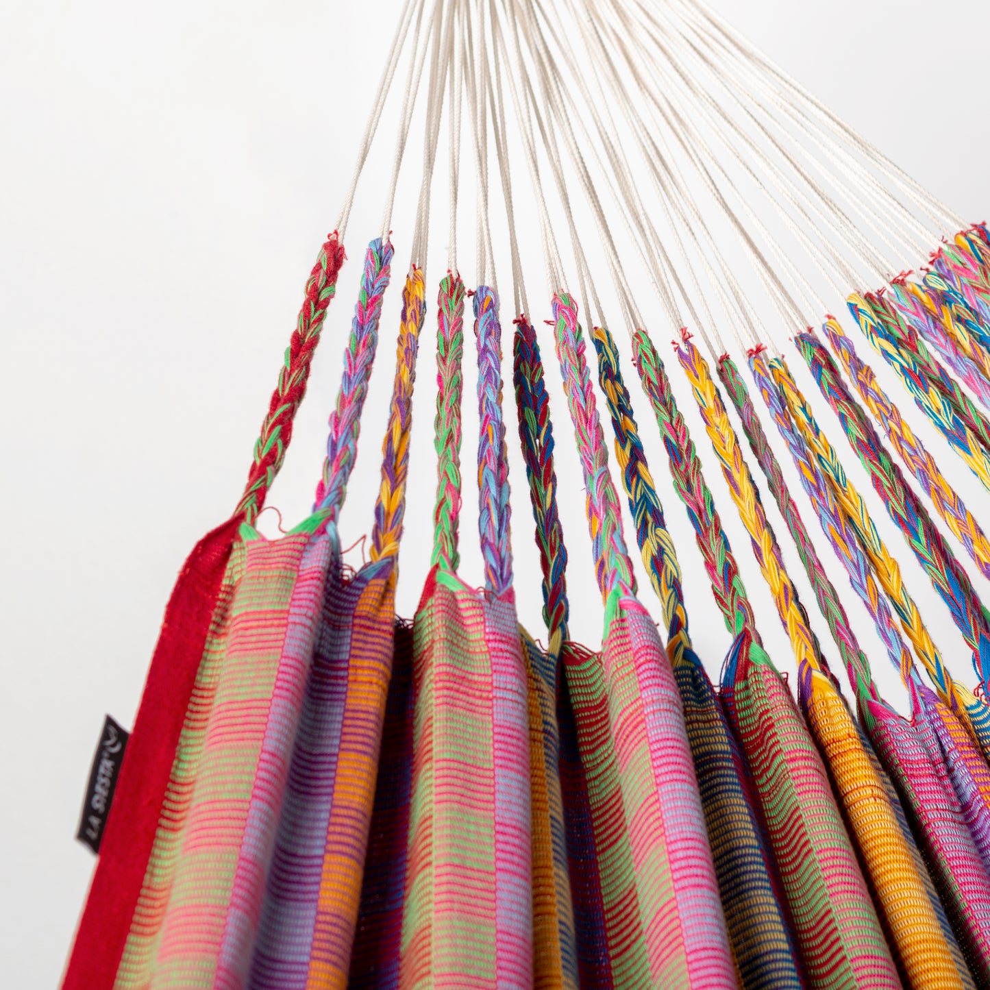 I nostri esperti di amache tessono il tessuto con i suoi motivi raffinati con particolare cura e intrecciano amorevolmente a mano ogni cadejo. Le tradizionali trecce colombiane sono considerate un segno distintivo di qualità e garantiscono un comfort unico durante il riposo.