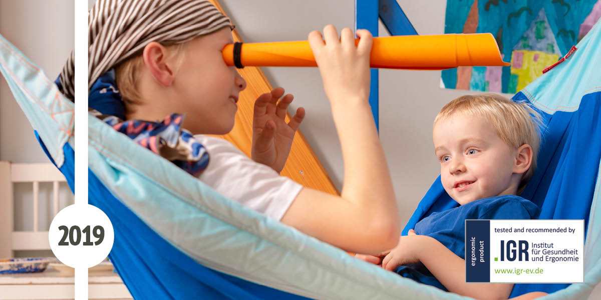 Die Moki Kinderhängematte wurde mit Ergotherapeuten zusammen entwickelt und setzt neue Standards in Puncto Design, Entwicklungsförderung und Sicherheit. Kindertagesstätten und Therapiezentren schwören auf die „kleine Schwester“ der Joki Hängehöhle, die mit dem ergonomischen Gütesiegel durch das unabhängige Institut für Gesundheit und Ergonomie e.V. (IGR) ausgezeichnet wurde.