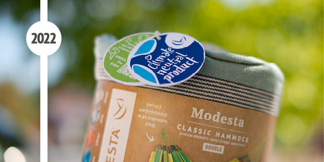 Unsere kolumbianischen Hängematten und Hängesessel sowie unser Unternehmensstandort in Jugenheim tragen die offizielle Zertifizierung von ClimatePartner.