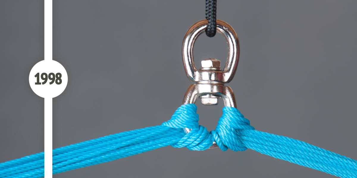 Mit der Erfindung von SafeTurn wurde ein neuer Sicherheitsstandard bei Hängesesseln etabliert. SafeTurn ermöglicht das Drehen auf der eigenen Achse, ohne dass sich die Aufhängeschnüre dabei überdrehen.