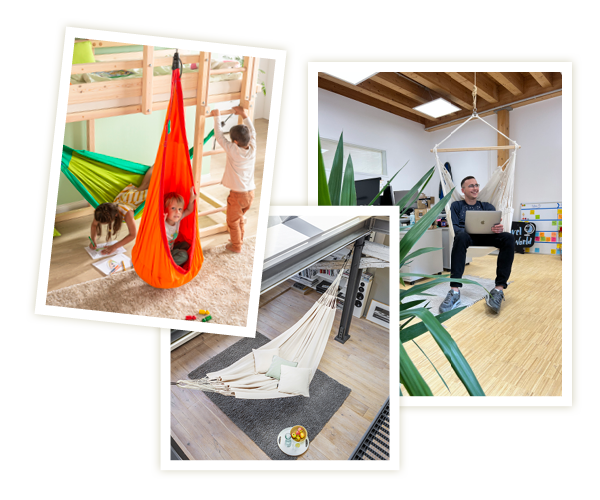 Rein in die Hängematte und rein ins gute Leben – mit unseren Produkten helfen wir dir und deiner Familie täglich dabei, eine gesunde Balance im Alltag zu finden. Zwischen Ruhe und Bewegung, Abenteuer und Entspannung, Zeit mit den Lieben und Zeit für dich selbst.