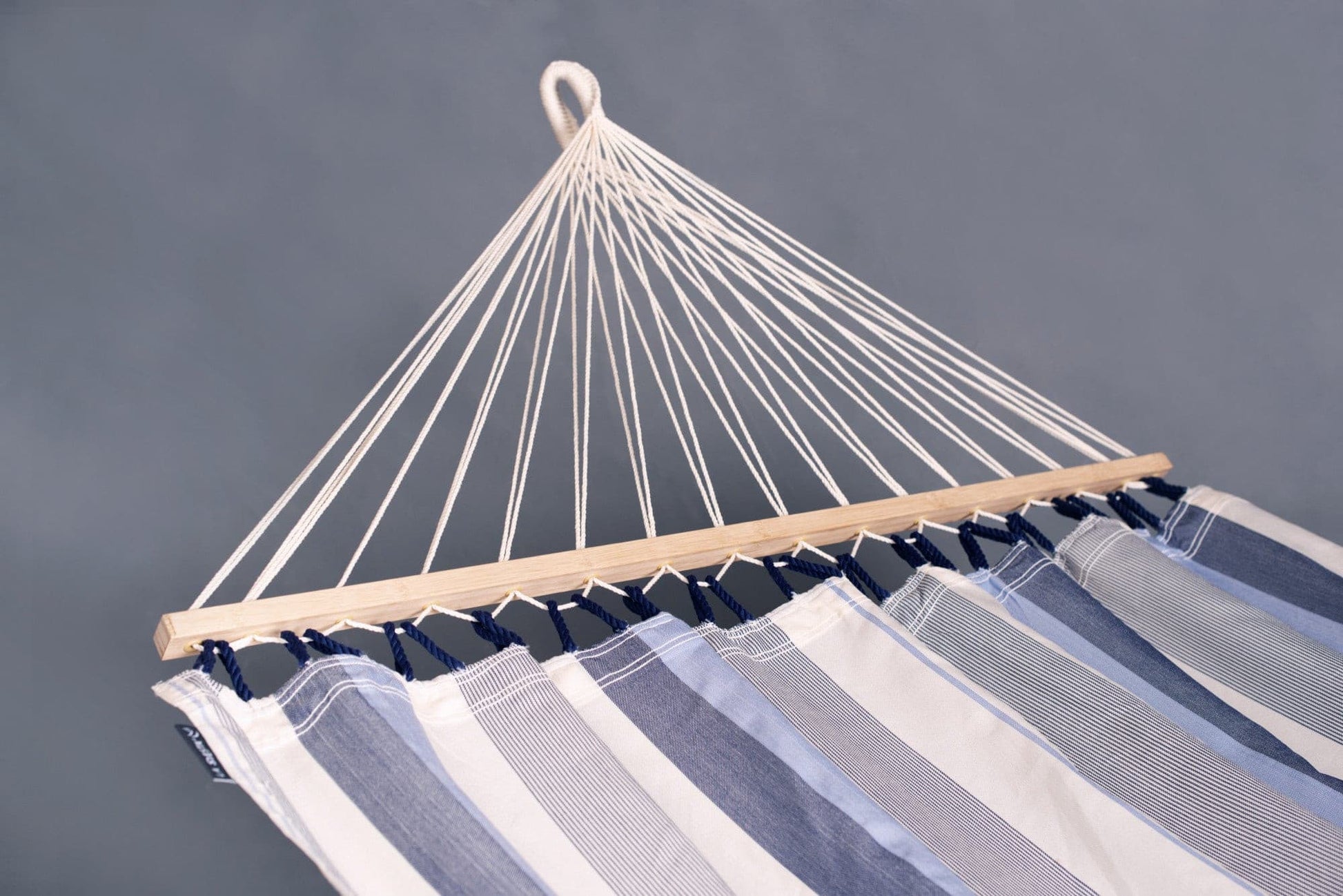 Mit ihrer extrabreiten Liegefläche kombiniert Alisio den einmaligen Komfort der klassisch-südamerikanischen Hängematte mit der einladenden und dekorativen Optik der Stabhängematte.