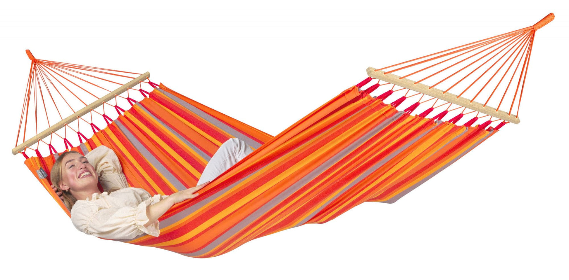 Mit ihrer extrabreiten Liegefläche kombiniert Alisio den einmaligen Komfort der klassisch-südamerikanischen Hängematte mit der einladenden und dekorativen Optik der Stabhängematte.