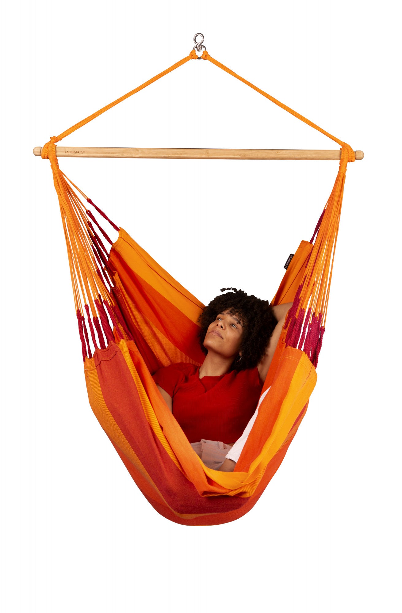 Die Hängesessel in den Größen Komfort und Kingsize von LA SIESTA bieten genug Platz zum Sitzen oder bequemen Liegen – wie in einer gemütlichen Hängematte.