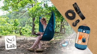 Der ZunZun wird in einem Aufbewahrungsbeutel geliefert und lässt sich dort immer wieder problemlos verstauen und transportieren. Die baumfreundlichen Gurte sind in einem zweiten kleinen Sack verstaut, um deinen Hängesessel zu schonen.